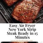A quick and easy recipe for perfectly cooked New York Strip Steaks using an air fryer. This method requires minimal oil and results in a juicy, flavorful steak in under 15 minutes of cooking time.