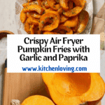 While these fries are best fresh, you can freeze uncooked seasoned pumpkin slices spread in a single layer on a baking sheet. Once frozen, transfer them to a freezer-safe bag and cook them in the air fryer straight from frozen, adjusting cooking time slightly. This way you’ll always have a quick snack ready to go.