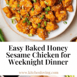 This Baked Honey Sesame Chicken recipe offers a healthier, grease-free alternative to classic takeout. Bite-sized chicken pieces are coated in cornstarch and baked to juicy perfection, then tossed in a rich, flavorful sauce made from honey, soy sauce, garlic, and spices. Ideal for busy weeknights, this dish balances sweet, salty, and spicy flavors, garnished with green onions and sesame seeds for extra texture and color. It’s a quick and easy meal that picky eaters and the whole family will love.