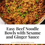 A quick and flavorful Beef Noodle Bowl recipe featuring tender ground beef cooked with aromatic garlic and ginger, tossed in a savory Asian-inspired sauce, combined with perfectly cooked instant ramen noodles, fresh grated carrots, green onions, and topped with toasted sesame seeds for a comforting meal ready in just 25 minutes.