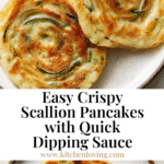 These Cheats Easy Scallion Pancakes are a quick and simple twist on the traditional Chinese snack using dumpling wrappers as a convenient shortcut. Crispy and golden on the outside with fresh, fragrant scallions throughout, they make a perfect appetizer or snack served with a tangy soy-vinegar dipping sauce.