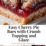 These Cherry Pie Bars feature a buttery crumb crust topped with sweet and tart cherry pie filling and finished with a smooth almond-vanilla glaze. Perfectly balanced in flavor and texture, these bars bake up golden and are ideal for sharing as a delicious dessert or snack.