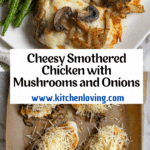 This Copycat Texas Roadhouse Smothered Chicken features juicy baked chicken breasts smothered in melted Monterey Jack cheese and a creamy, flavorful mushroom and onion sauce. Perfect for a comforting American dinner, this recipe combines seared chicken with sautéed mushrooms and caramelized onions, all baked together to melty perfection.