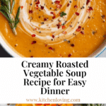 This Roasted Vegetable Soup is a smooth and creamy blend of caramelized vegetables including onions, garlic, peppers, sweet potatoes, tomatoes, and carrots, enhanced with fresh rosemary, Italian herbs, and a touch of single cream. It’s a comforting and flavorful soup perfect for warming up on cooler days.