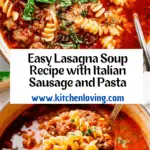 This easy lasagna soup combines all the classic flavors of traditional lasagna into a comforting, hearty soup that’s quick to prepare. Ground Italian sausage, tomatoes, Italian seasoning, and pasta simmer together to create a delicious and satisfying meal, perfect for weeknights or anytime you crave the taste of lasagna in a warm, bowl-friendly form.
