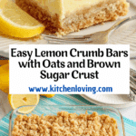 Easy Lemon Crumb Bars feature a buttery oat and brown sugar crust layered with a sweet, tangy lemon filling and topped with a golden crumble. Perfectly balanced between tart and sweet, these bars make a delightful dessert or snack that is easy to prepare and sure to please.