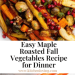 This Easy Maple Roasted Fall Vegetables recipe features a colorful mix of seasonal root vegetables and brussels sprouts glazed in a sweet maple syrup and seasoned with herbs and spices. Roasted to perfection in the oven, it’s a simple, wholesome side dish that’s perfect for holiday dinners or a cozy weeknight meal, requiring just one sheet pan and 15 minutes of prep time.