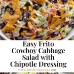 Frito Cowboy Cabbage is a vibrant, Tex-Mex inspired salad combining crunchy coleslaw mix, black beans, corn, and fresh vegetables tossed with a smoky chipotle dressing and crunchy Chili Cheese Fritos. This flavorful salad is easy to prepare, making it a perfect quick side or light meal loaded with bold flavors and textures.
