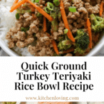 A delicious and quick Ground Turkey Teriyaki Rice Bowl featuring savory homemade teriyaki sauce, tender ground turkey, and crunchy vegetables like carrots and broccoli. Ready in under 30 minutes, this flavorful Asian-inspired main course is perfect for a family meal.