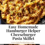 This Homemade Hamburger Helper Cheeseburger Pasta Skillet is a quick and easy dinner recipe perfect for busy weeknights. Made with ground beef, a blend of savory spices, cavatappi or macaroni noodles, and melted cheddar cheese, it offers a comforting and flavorful meal that the whole family will enjoy.