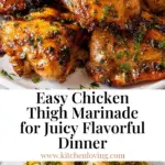 This flavorful Chicken Thigh Marinade recipe combines olive oil, brown sugar, soy sauce, fresh herbs, and garlic to create a perfect blend for tender, juicy chicken thighs. Marinate for at least an hour to infuse the meat with a balanced sweet, savory, and citrusy profile, ideal for grilling, baking, or pan-cooking.
