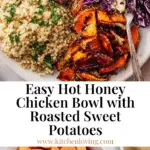 This Hot Honey Chicken Bowl combines spicy, sweet, and tangy flavors with tender air-fried chicken thighs, roasted sweet potatoes, fresh cabbage slaw, and a zesty honey sauce served over fluffy quinoa for a balanced and flavorful meal perfect for weeknight dinners.
