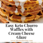 11. Serve: Arrange the churro waffles on a plate, drizzle them with the cream cheese glaze, and optionally add warm keto maple syrup for extra sweetness.