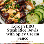 Korean BBQ Steak Rice Bowls with Spicy Cream Sauce combine tender, marinated steak slices with fluffy white rice and fresh veggies, all topped with a creamy, spicy gochujang sauce. This dish delivers a perfect balance of sweet, savory, spicy, and umami flavors, inspired by traditional Korean BBQ for a comforting and satisfying meal.