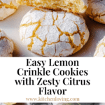 Lemon Crinkle Cookies are soft, chewy, and bursting with fresh lemon flavor. These bright and zesty cookies are rolled in powdered sugar before baking, creating a beautiful cracked surface. Perfect for a refreshing treat, they combine tart lemon juice and zest with a tender crumb, baked to perfection in under 10 minutes.