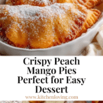 These Peach Mango Pies feature a tender, flaky homemade crust filled with a sweet and tangy mixture of fresh peaches and mangoes. The mini pies are fried to golden perfection and dusted with powdered sugar for a delightful treat that’s perfect for any occasion.