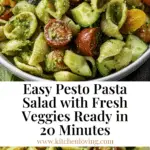 This Pesto Pasta Salad is a quick and flavorful dish that combines tender pasta shells with a creamy pesto and mayo dressing, fresh cherry tomatoes, crunchy mini cucumbers, and cubed string cheese. Ready in under 20 minutes, it’s a perfect side or light meal for warm days or gatherings, enhanced with optional toppings like parmesan, fresh basil, and toasted pine nuts for extra texture and flavor.