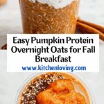 These Pumpkin Protein Overnight Oats are a quick, nutritious, and delicious Fall breakfast option that combines the warm flavors of pumpkin pie with a boost of protein. Perfect for busy mornings, they require only a few minutes of prep and can be made ahead, offering a gluten-free and vegan-friendly meal that’s easy to customize with your favorite toppings.