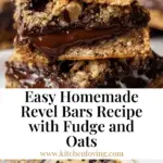 Revel Bars are a deliciously rich dessert featuring a thick, chewy oatmeal cookie base layered with a creamy chocolate fudge filling and topped with a sprinkle of remaining cookie dough. These bars combine the delightful flavors of chocolate, caramel, pecans, and oats for a decadent treat perfect for any occasion.