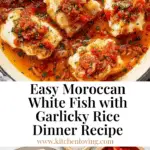 This Simple Moroccan White Fish recipe features tender, flaky white fish cooked in a vibrant and aromatic mixture of grated red peppers, garlic, and fresh cilantro. Ready in under 30 minutes, this dish offers bright, savory Moroccan flavors served alongside optional garlicky jasmine rice and green beans for a complete, satisfying meal.