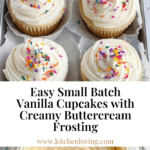 This Small Batch Vanilla Cupcakes recipe yields six moist and fluffy cupcakes, perfect for when you want a sweet treat without making a large batch. Made with simple pantry ingredients and topped with a silky vanilla buttercream frosting, these cupcakes are an ideal dessert for any occasion.