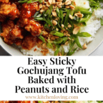This Sticky Gochujang Tofu with Peanuts and Herbs is a vibrant, flavorful dish perfect for a quick and healthy meal. Crispy baked tofu is coated in a rich, sticky gochujang sauce, then garnished with crunchy peanuts and fresh herbs, served alongside rice and fresh vegetables. It combines Korean-inspired spice with a satisfying texture, making it a delightful vegetarian main.