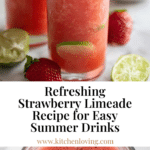 For a party, serve the strawberry limeade in a large glass dispenser topped with floating strawberry slices and lime wedges. You can also freeze some lime juice into ice cubes for a fun twist that keeps the drink chilled without watering down the vibrant flavors.
