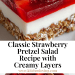 Strawberry Pretzel Salad is a delightful dessert combining a salty pretzel crust, creamy cheesecake layer, and a sweet strawberry gelatin topping with fresh strawberries. This refreshing, no-bake salad is perfect for gatherings and offers a unique blend of flavors and textures.