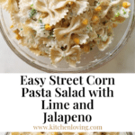 A vibrant and creamy Street Corn Salad featuring tender farfalle pasta, charred corn, and a zesty lime-mayo dressing spiced with chili powder and paprika. This refreshing salad is perfect for summer gatherings or as a flavorful side dish.
