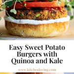 These Sweet Potato Burgers are a wholesome, flavorful vegetarian alternative to traditional burgers. Made with baked sweet potatoes, quinoa, red lentils, kale, feta, and seasoned with smoked paprika and fresh herbs, these patties are moist, tender, and packed with nutrition. They’re coated in panko bread crumbs and can be pan-fried or baked to a perfect golden crisp. Served with a garlicky lemon mayo, these burgers are perfect for a healthy lunch or dinner with a delightful mix of textures and bright flavors.