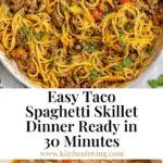 Taco Spaghetti is a flavorful and easy one-pan meal that combines the bold seasonings of taco meat with classic spaghetti noodles. This dish brings together ground beef, taco seasoning, Rotel tomatoes, and cheddar cheese for a delicious twist on traditional spaghetti, perfect for a quick weeknight dinner.