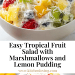 A refreshing and easy-to-make Tropical Marshmallow Fruit Salad combining citrusy lemon pudding with a medley of fresh and canned tropical fruits, fluffy Cool Whip, shredded coconut, and sweet mini marshmallows. Perfect for potlucks, picnics, or a light dessert.